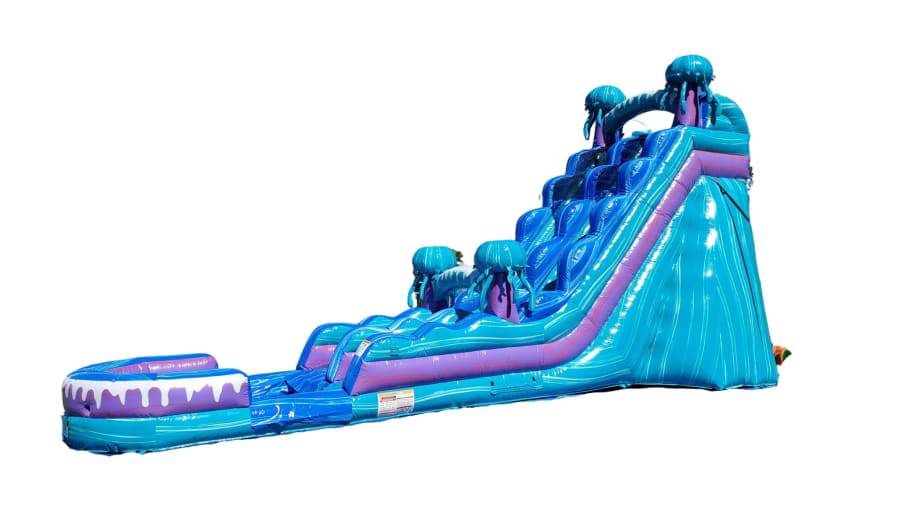 Water Slides: Beat the heat with our exciting selection of water slides! Our water slides range in size from small to large and come in a variety of themes, including dolphins, splash mountain and paradise palm trees. When you're throwing a big outdoor celebration or having some summertime fun, make a splash with a water slide.