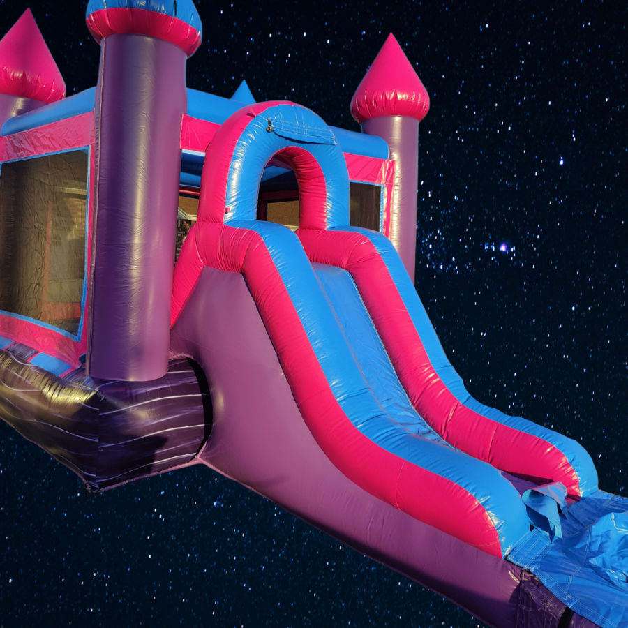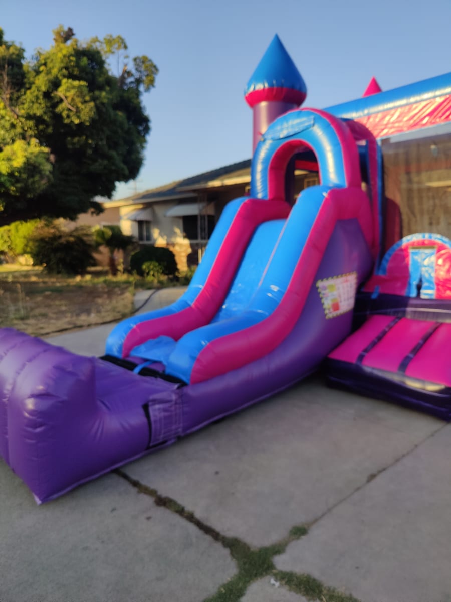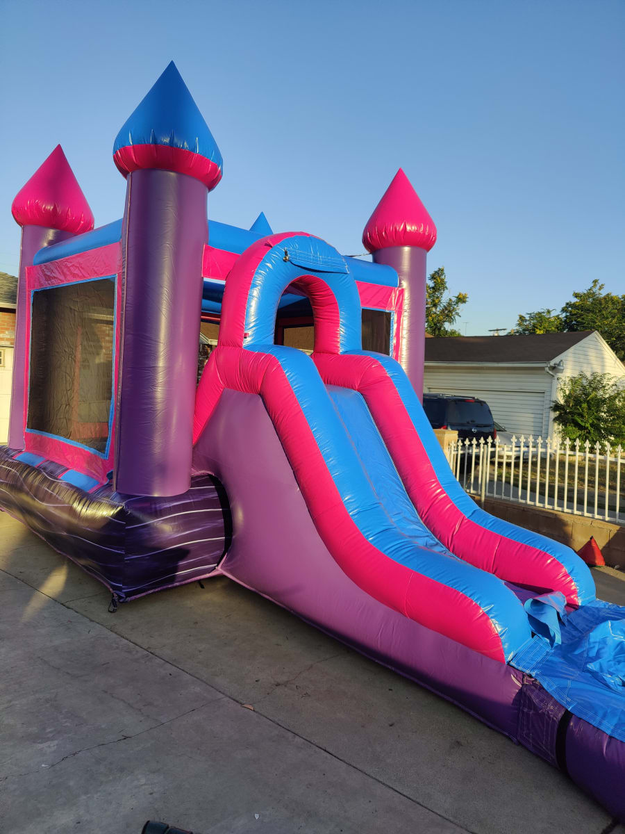 The Princess Combo Bounce House is a must-have for any little princess's birthday party or special event. This inflatable castle features a beautiful princess-themed design complete with a bouncy area, a slide, and obstacles for kids to play on and enjoy. The combo design ensures that kids of all ages will have a blast, making it perfect for birthday parties, family gatherings, and neighborhood events. With its easy setup and compact design, this bounce house will bring joy and excitement to kids and adults alike. The puncture-resistant material ensures durability, making this bounce house a great investment for any family. Watch as your little princess and her friends have the time of their lives in this magical and fun-filled bounce house.