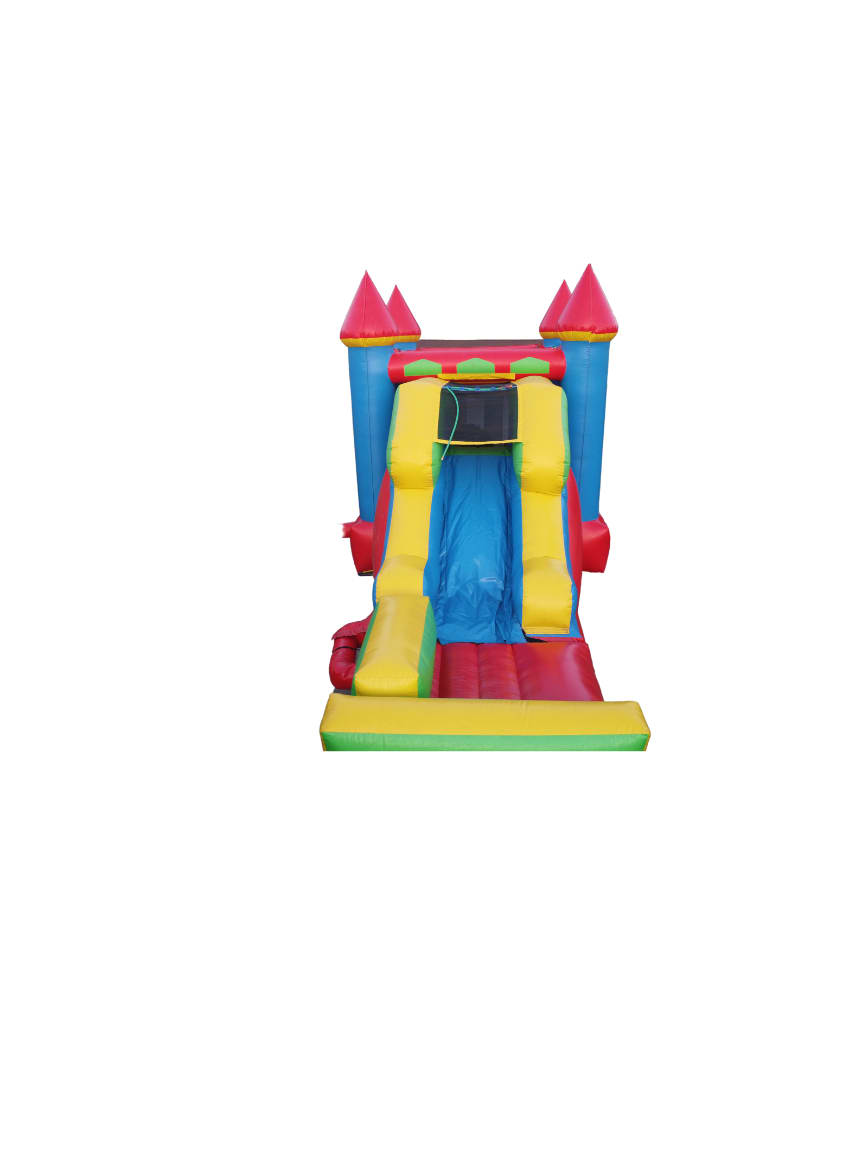 Make your next event unforgettable with our red, yellow, and blue castle combo bounce house! This inflatable play structure is perfect for kids' birthday parties, family gatherings, and community events. With its vibrant red, yellow, and blue design, it's sure to catch the eye of kids and adults alike. The spacious bounce area, complete with safety netting, provides hours of safe and exciting fun. The added slide and obstacle course elements offer even more opportunities for fun and adventure. The easy-to-use design makes set up and take down a breeze, so you can spend more time having fun and less time setting up. Get ready for endless excitement with our top-of-the-line red, yellow, and blue castle combo bounce house!