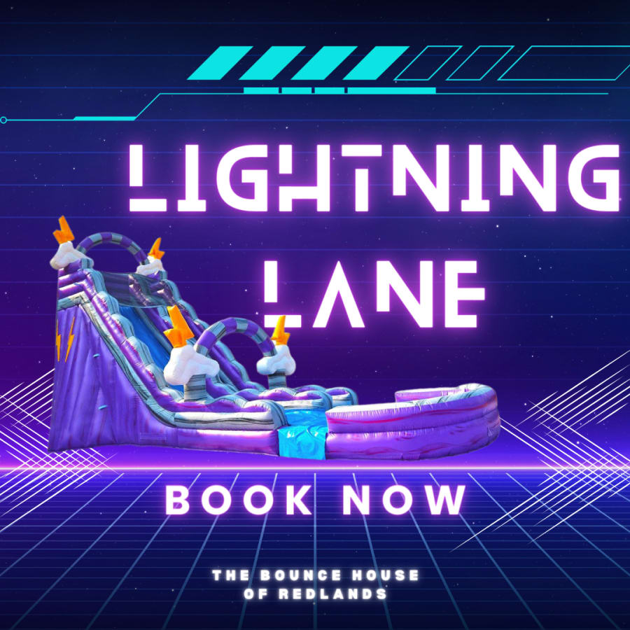 The Bounce House of Redlands presents Lightning Lane - the electrifying inflatable waterslide! This exciting waterslide features a vibrant purple color with lightning bolt accents, adding a touch of energy and excitement to any outdoor event. Its steep, slippery surface provides a thrilling ride, while its safety features, such as secure anchoring and high walls, ensure a safe and enjoyable experience for all. Whether you're hosting a backyard pool party, a neighborhood block party, or any other outdoor event, Lightning Lane is sure to be a hit. Rent this high-voltage inflatable waterslide today and add some excitement to your next gathering!